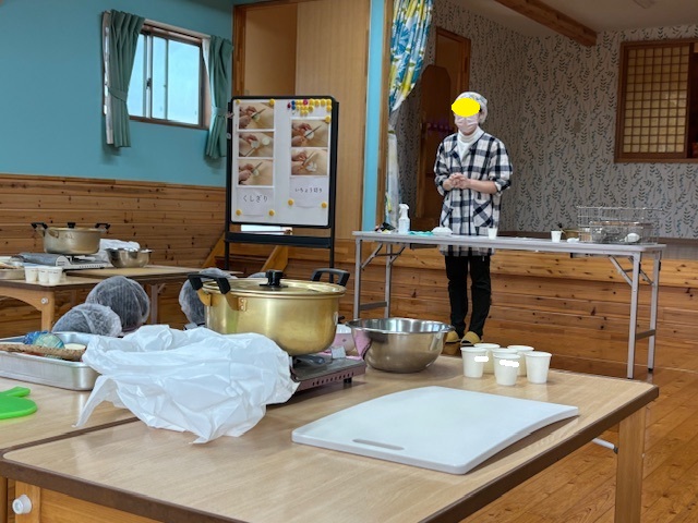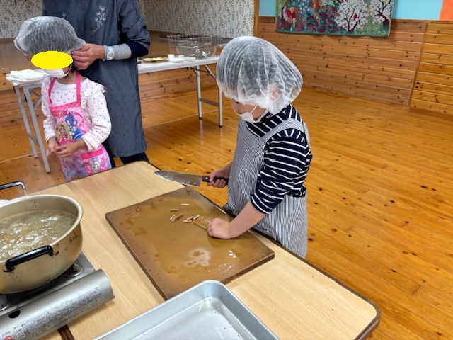 今日の給食 〈メニュー〉麦ごはん豚汁高野豆腐の玉子とじ果物今日は、にじ組・ほし組と一緒に豚汁クッキングでした。24日が「和食の日」ということで、煮干しと昆布から出汁をとるところからしましたよ。みんなが頑張って切った野菜がたっぷり入った豚汁はとっても美味しかったです。また、クッキングしましょうね!