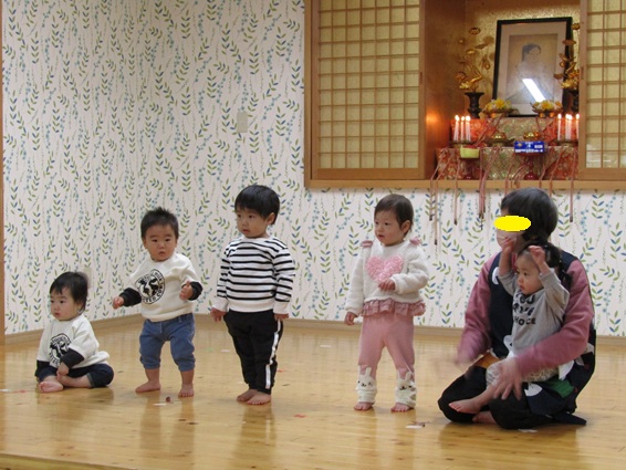 ひよこ・りす組は、ピアノに合わせてお名前を呼んでもらい、お返事をしました。