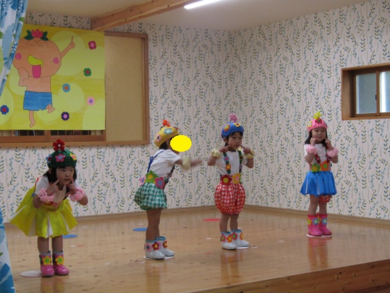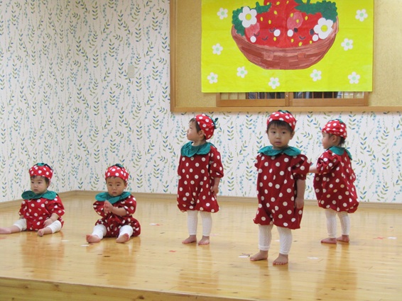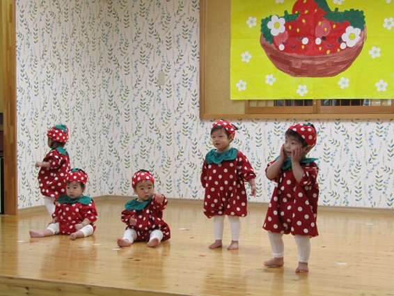 ひよこ・りす組は「ちっちゃないちご」を踊りました。