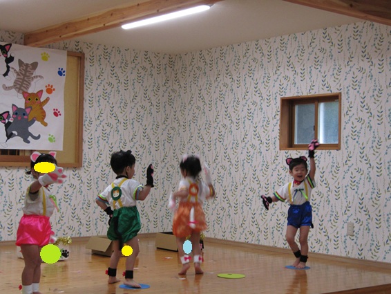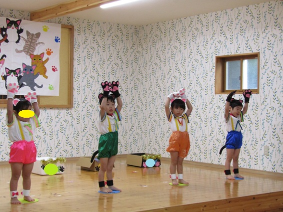 うさぎ組は、ねこになり「にゃんパラ☆ダンス」を踊りました。