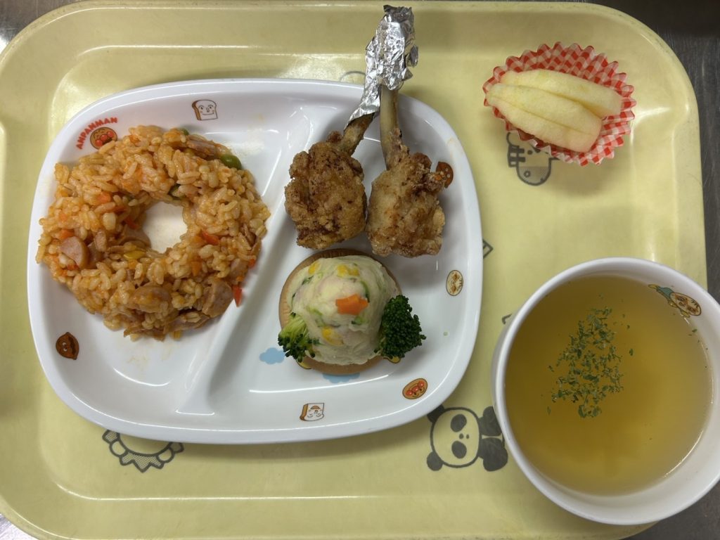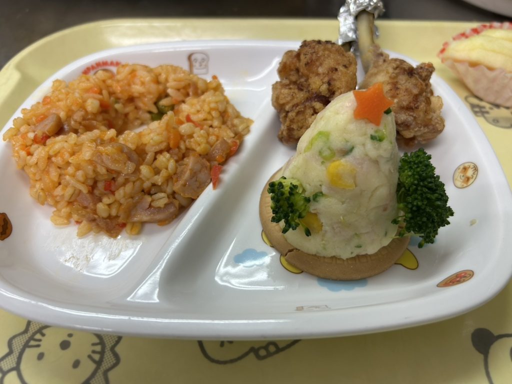 ケチャップライスをリース型にしましたが、園児から「ドーナツだ!!」と言われましたよ。