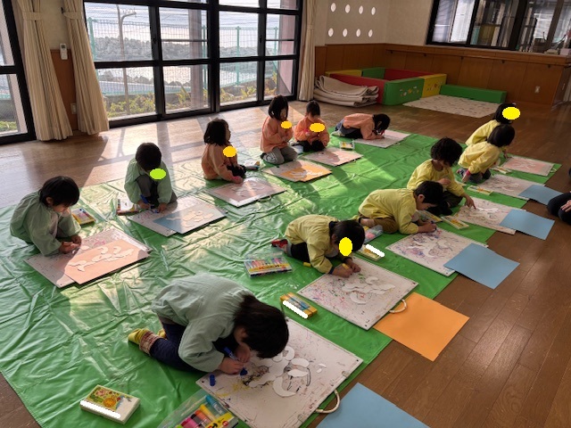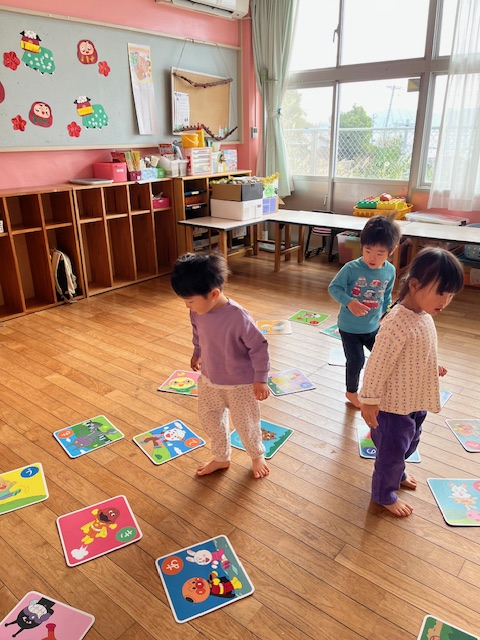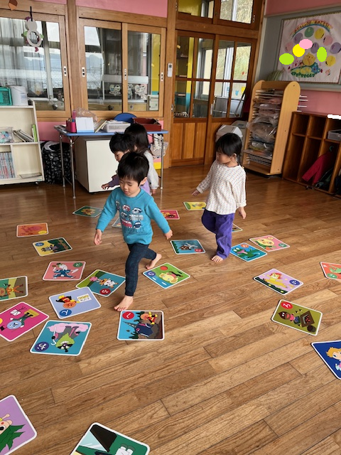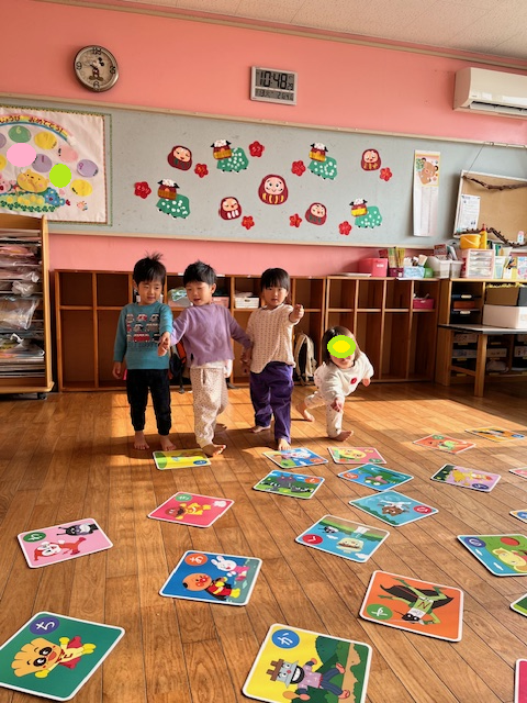 寒さに負けず外で鬼ごっこをしたり、室内でかるた取りをしたりして遊んでいます。